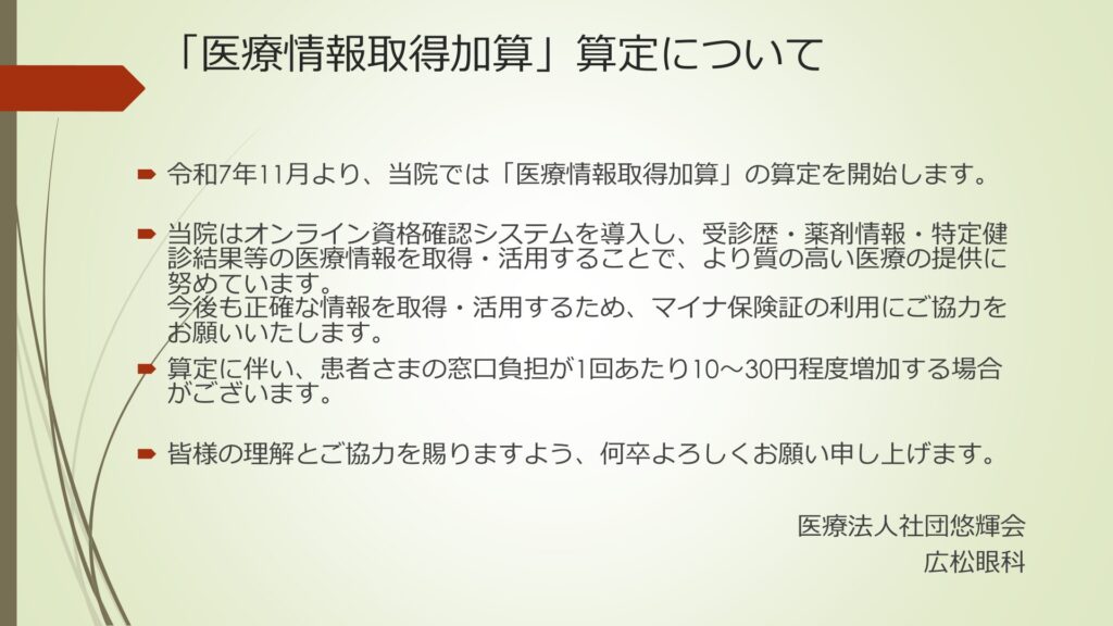 令和7年11月より、当院では「医療情報取得加算」の算定を開始します。